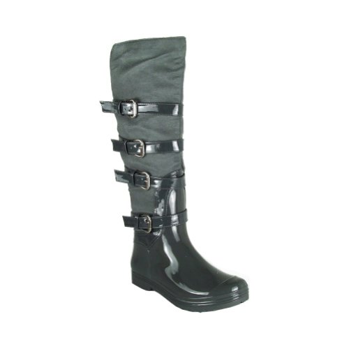 Micro Suede Buckle Straps Dress Rain Boots Gray Review