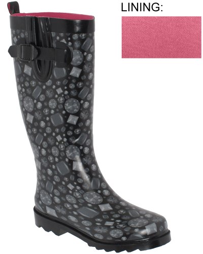 Capelli New York Shiny Tonal Glam Gems Sporty Rubber Rain Boot Black Combo 7 Review